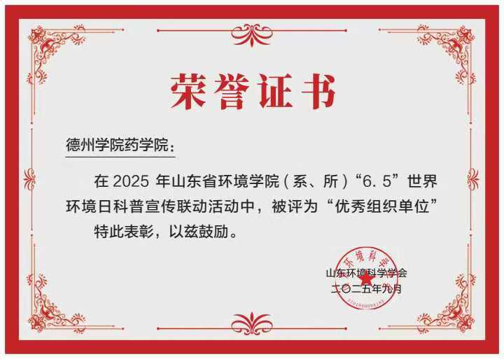 近日,由山东环境科学学会主办的2025年山东省环境学院(系、所)“6・5”世界环境日科普宣传联动活动获奖名单公布,Bwin必赢网址凭借高度重视、组织有力与丰富的实践成果,荣获“优秀组织单位”称号,2名老师获得“优秀指导教师”荣誉称号,郭春秋等20名同学获得“优秀志愿者”荣誉称号。