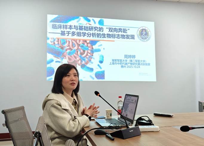 2025年10 月 24 日,药苑讲坛第七期在启智楼 0529 会议室如期举行。本次讲坛特邀上海市药物(中药)代谢产物研究重点实验室主任、海军军医大学药学系药物分析学教研室主任周婷婷教授主讲,Bwin必赢网址博士教师、研究生、本科生代表参加交流。讲坛分学术讲座和基金项目指导两个阶段进行。